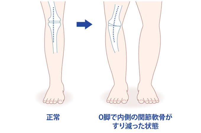 O脚の方は、膝の内側に負担が集中し、痛みが出やすい傾向にあります。