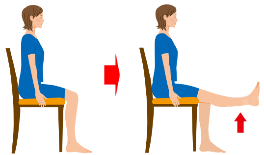 - 椅子に座って脚上げ運動(太ももを鍛える)