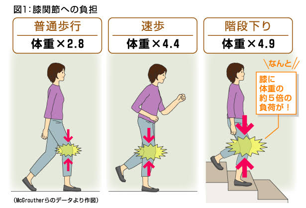 体重が増えると体重の約3倍の負荷が膝関節にかかると言われます(歩行時などの動作時)。