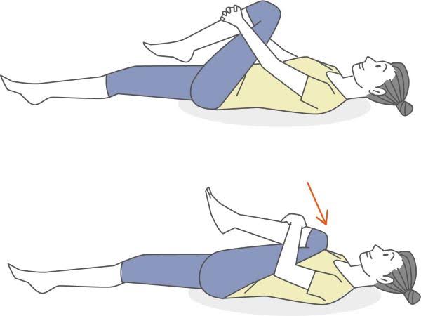 - 仰向けに寝た状態で、片方の膝を胸に引き寄せます。