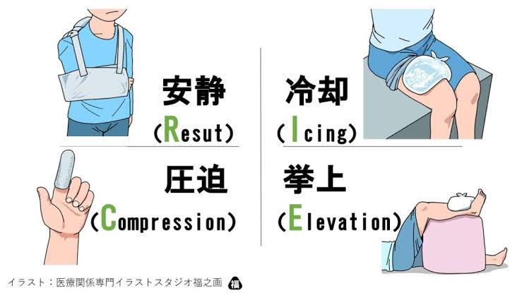 • Rest(安静):無理に歩かず安静にする