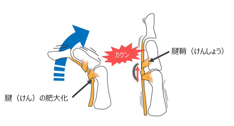 ばね指(弾発指)は、指を動かす腱と腱鞘が炎症を起こし、指の曲げ伸ばしがスムーズにできなくなる症状です。