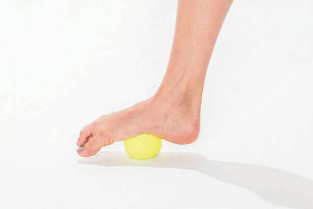 足底筋膜の柔軟性を保つために、次のようなストレッチを習慣にしましょう。- 足の裏をテニスボールなどでコロコロ転がす