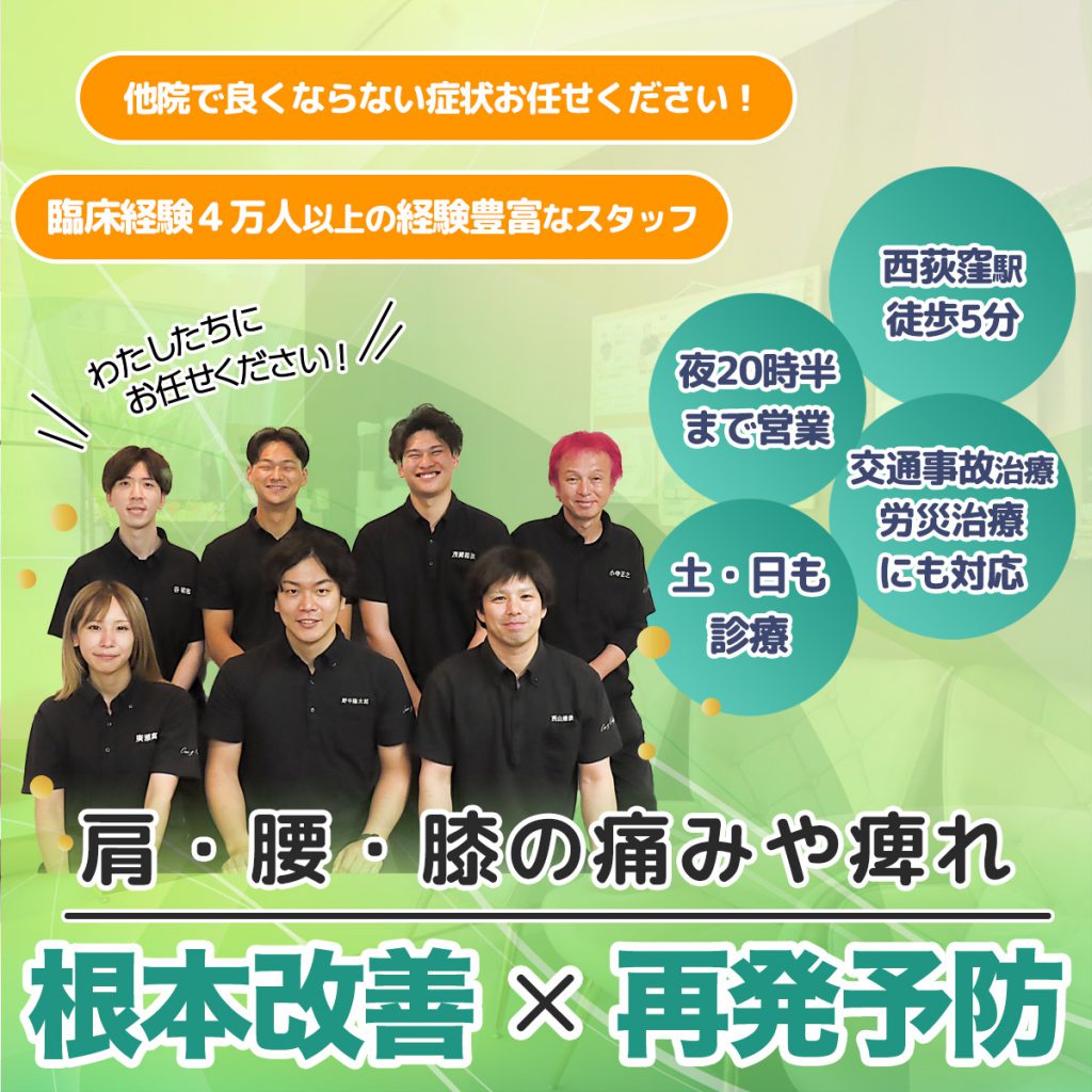 のなか鍼灸整骨院 東京都杉並区西荻南4-27-9 1F TEL:03-5941-7014 【営業時間】9:30〜13:30 / 15:30〜20:30 【定休日】日曜日