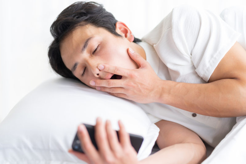 うつ伏せ寝や横向き寝で首が大きくねじれた状態が続くと、首への負担が偏り、ストレートネックを悪化させる原因になります。特に、スマホを見ながら横になり、そのまま寝てしまう習慣は注意が必要です。
