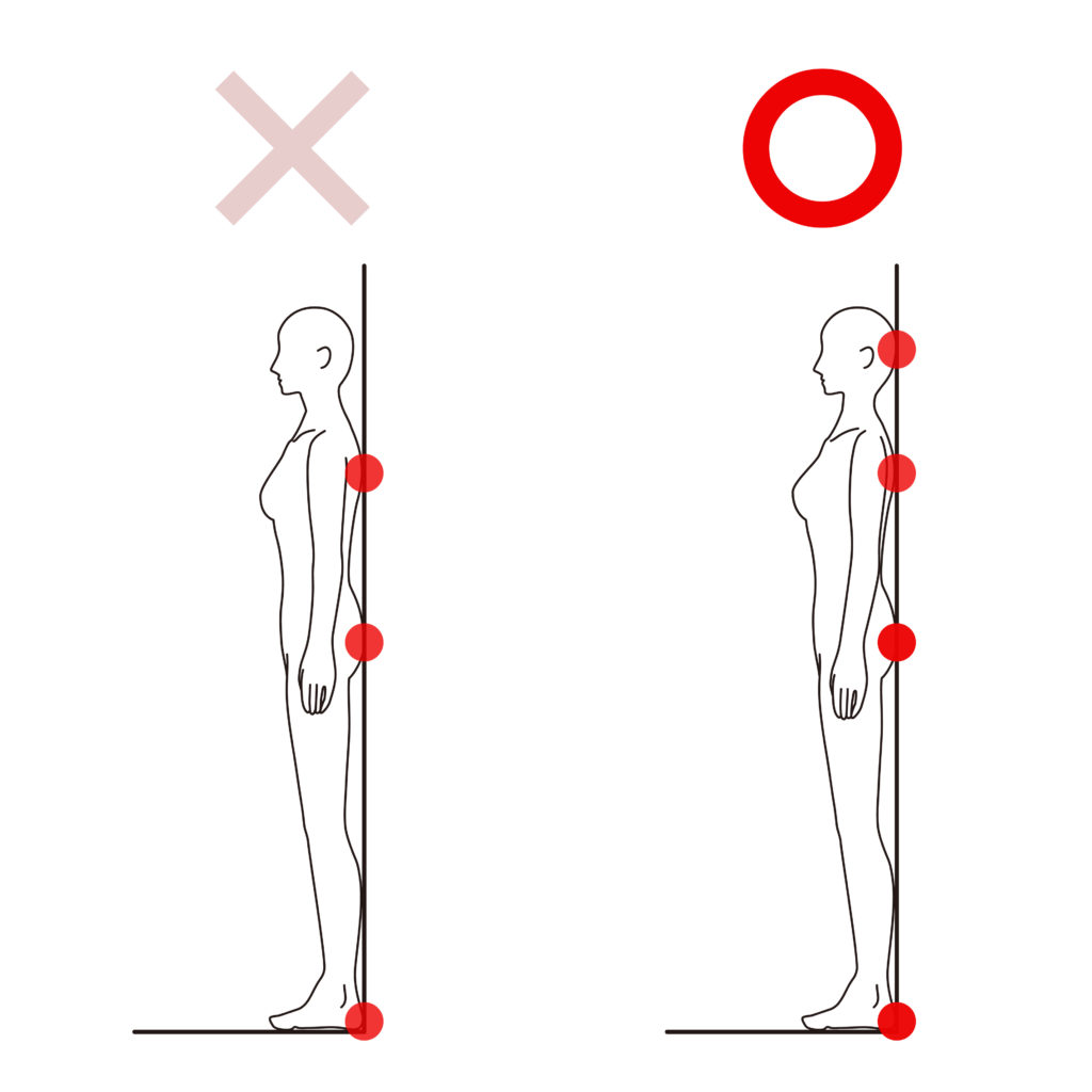 壁に「かかと・お尻・背中」をつけて立ちます。